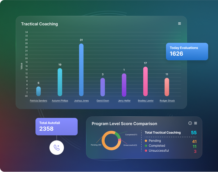 Transform agent performance with instant feedback through our call center agent monitoring software and personalized coaching recommendations.